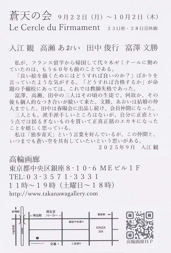 蒼天の会 Le Cercle du Firmament(絵画部会員 入江観 田中俊行 出品)