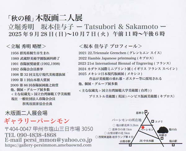 「秋の種」木版画二人展 立堀秀明 坂本佳与子 ーTatsubori & Sakamotoー